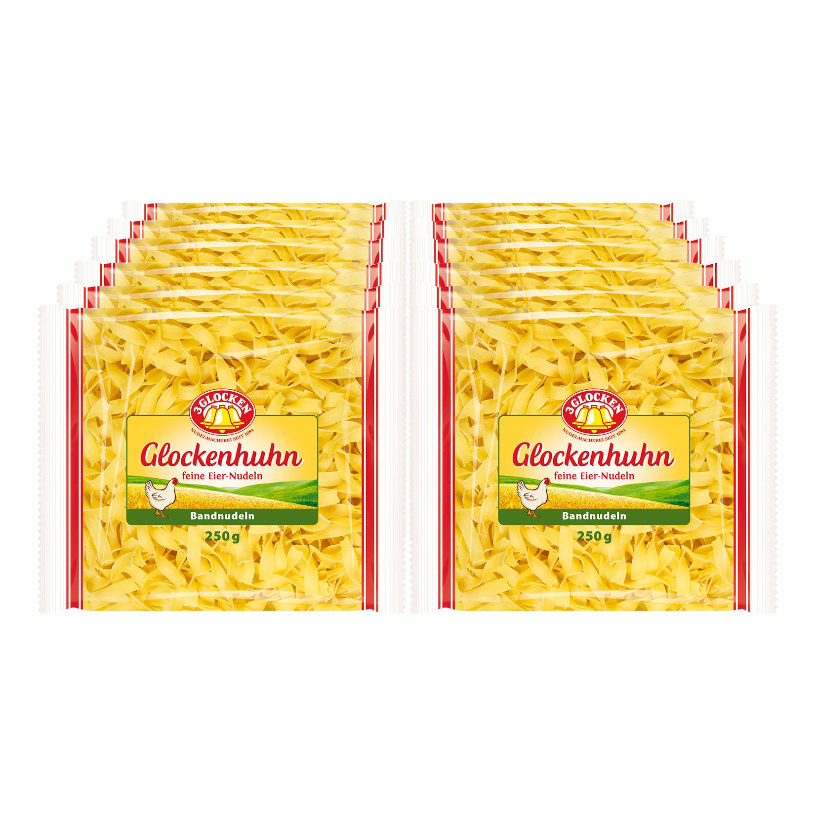 3 Glocken Glockenhuhn Bandnudeln – Der Klassiker für Ihre Familienküche (12 x 250g)