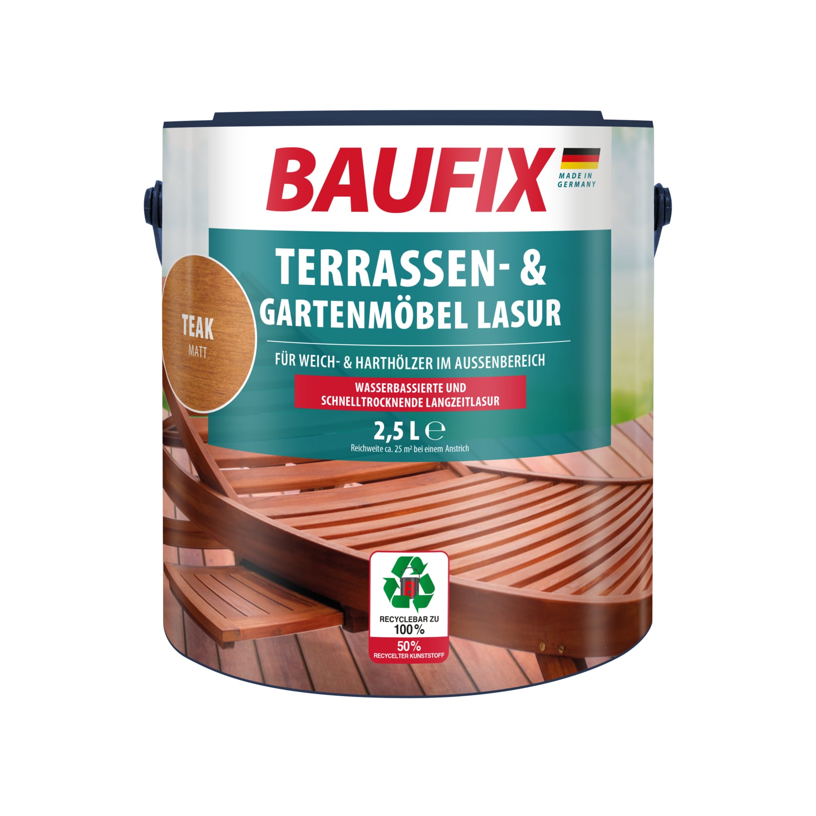 Verleihen Sie Ihren Gartenmöbeln neuen Glanz und schützen Sie sie gleichzeitig vor den Elementen. Bestellen Sie noch heute die BAUFIX Terrassen- & Gartenmöbel-Lasur Teak Matt und verwandeln Sie Ihren Außenbereich in ein Paradies!