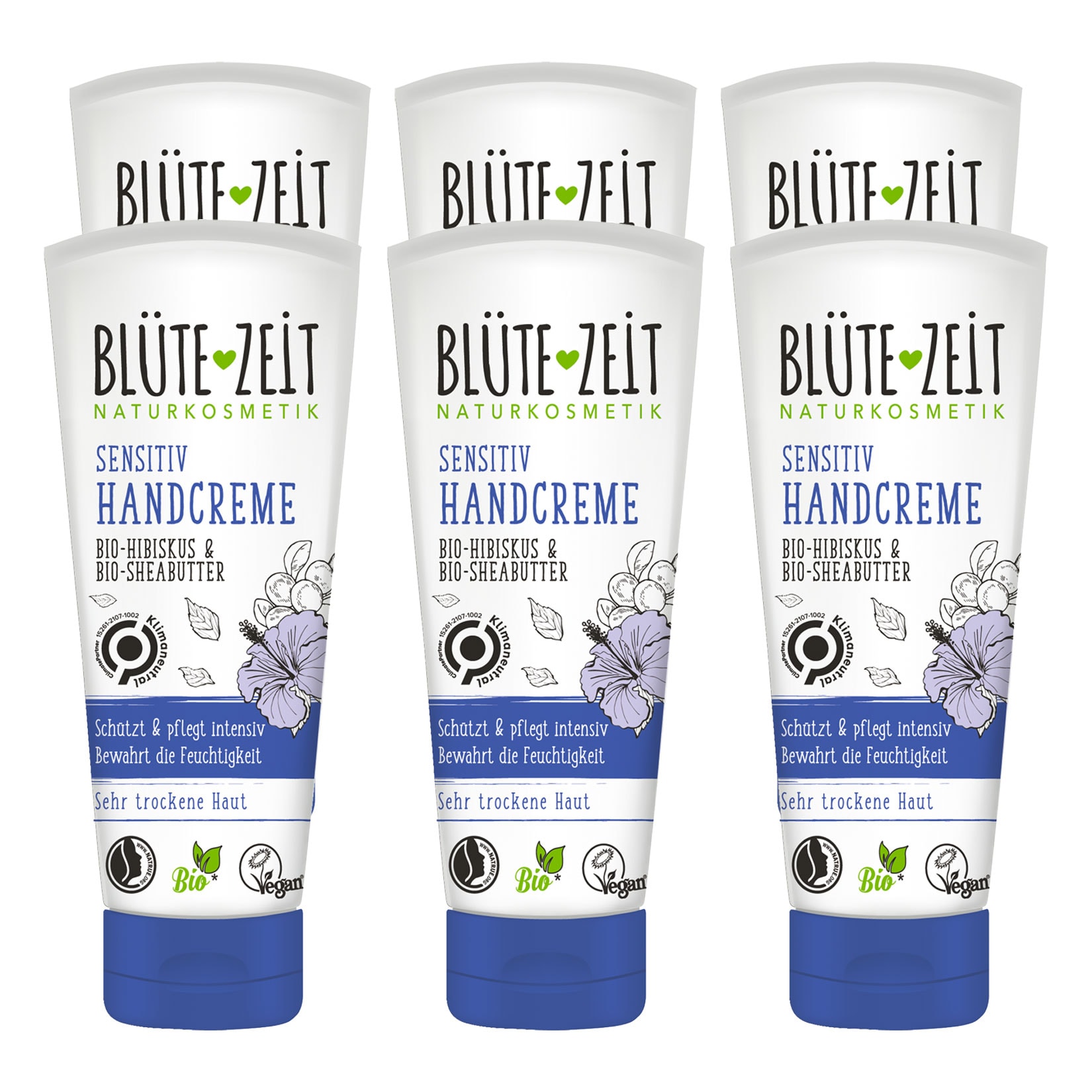 BLÜTE-ZEIT Handcreme Sensitiv Bio Hibiskus & Bio Sheabutter – Verwöhnen Sie Ihre Hände im 6er Pack