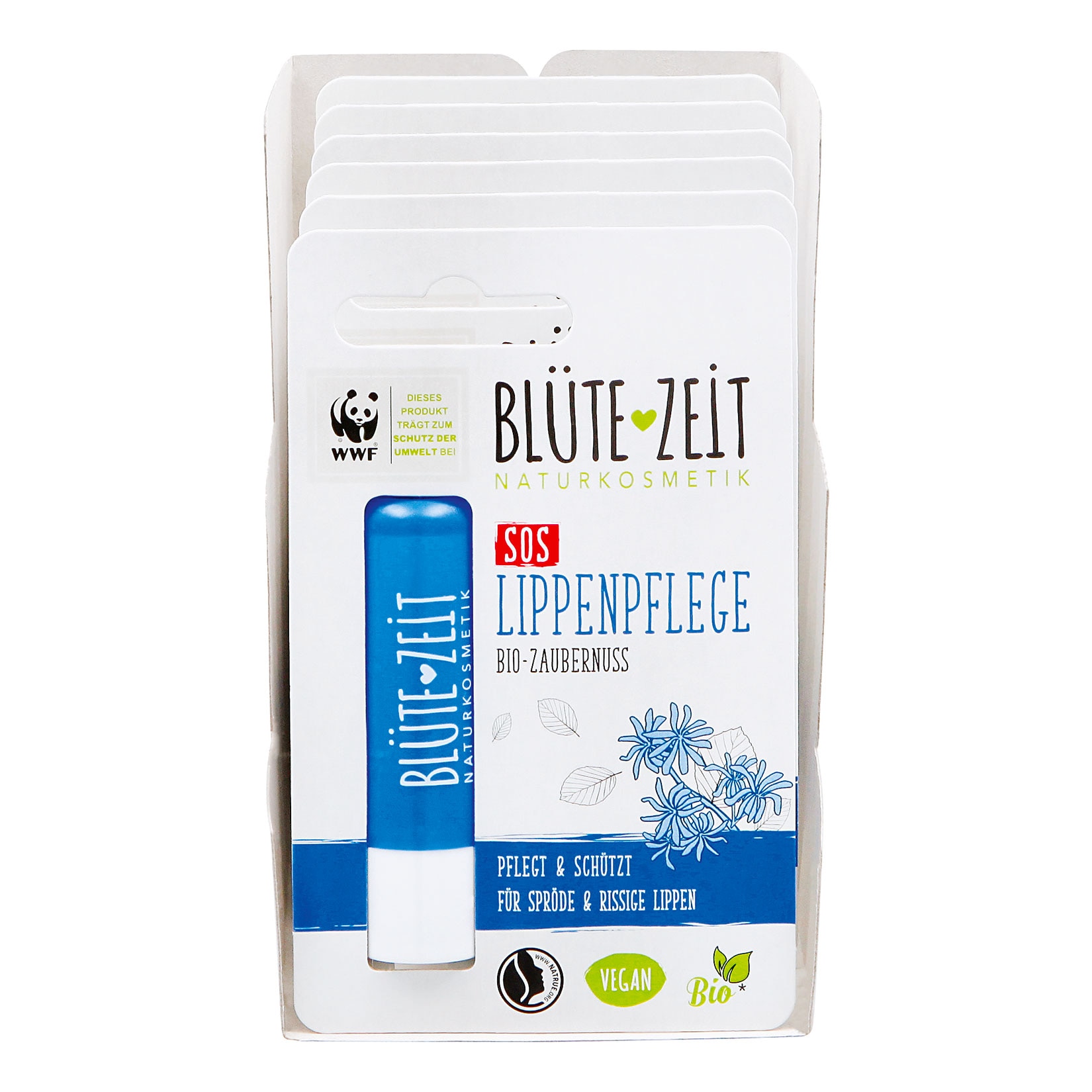 BLÜTE-ZEIT Lippenpflegestift SOS BIO-ZAUBERNUSS 4,5 g – 10er Pack: Verwöhne deine Lippen auf natürliche Weise