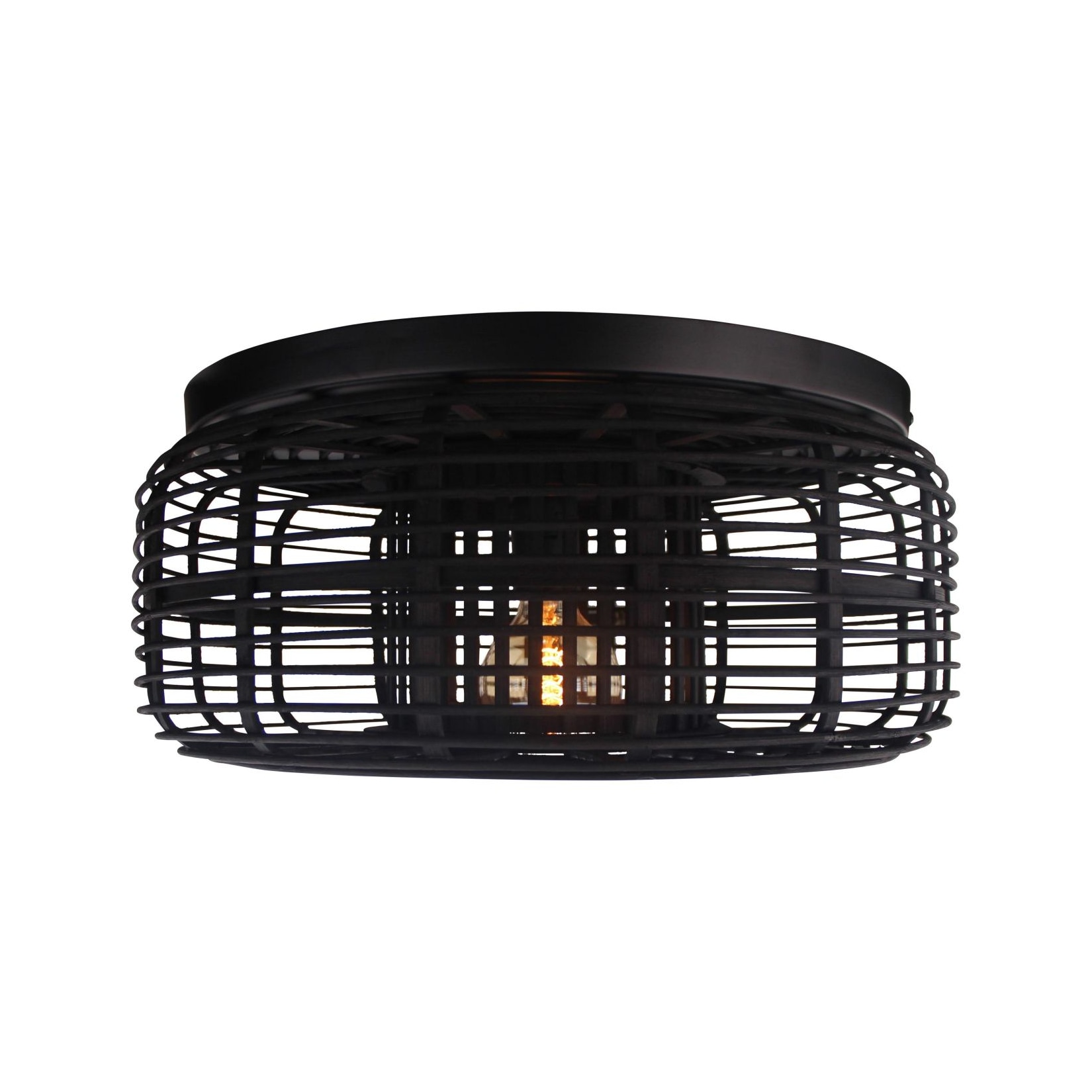 Die Deckenleuchte ist in den Farben Holz dunkel und Schwarz gehalten.