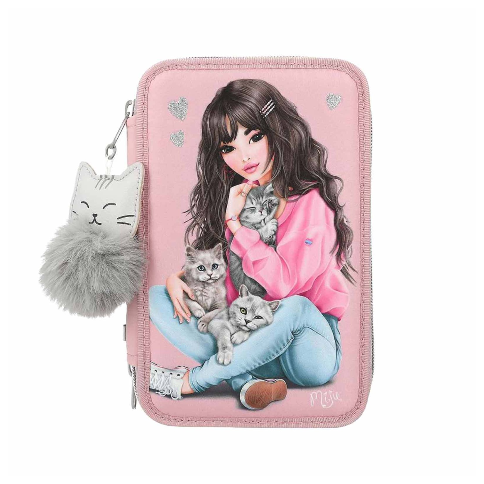 Tauche ein in die zauberhafte Welt von TOPModel mit dieser wunderschönen 3-fach Federtasche im bezaubernden Kätzchen-Design! Diese prall gefüllte Federtasche ist nicht nur ein praktischer Helfer für den Schulalltag, sondern auch ein echter Hingucker, der die Herzen junger TOPModel-Fans höherschlagen lässt. Mit ihrem liebevollen Design, den hochwertigen Materialien und der durchdachten Ausstattung ist sie der perfekte Begleiter für kreative Köpfe und angehende Künstler.