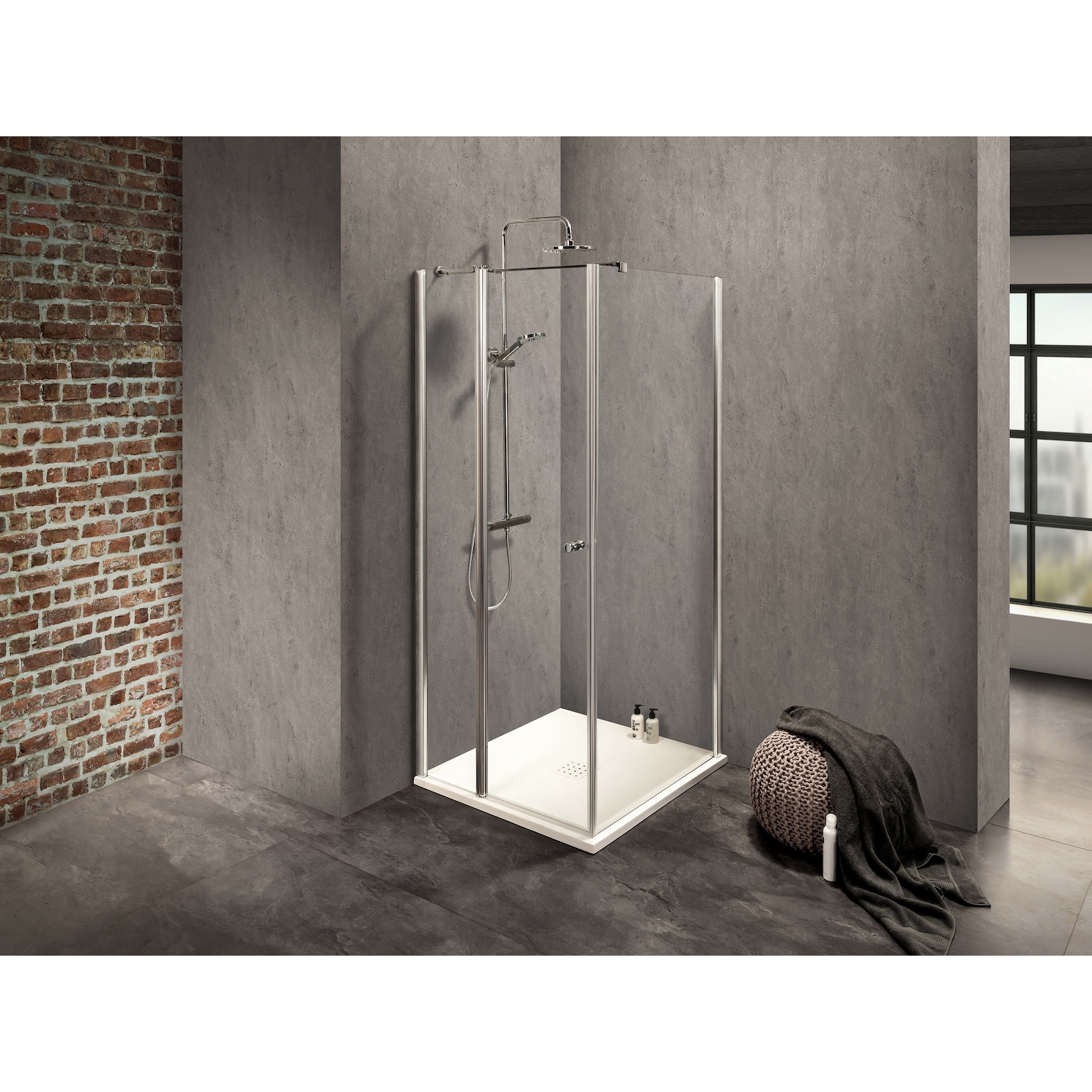 - Drehtür mit Festteil links: Bequemer Einstieg und moderne Optik.