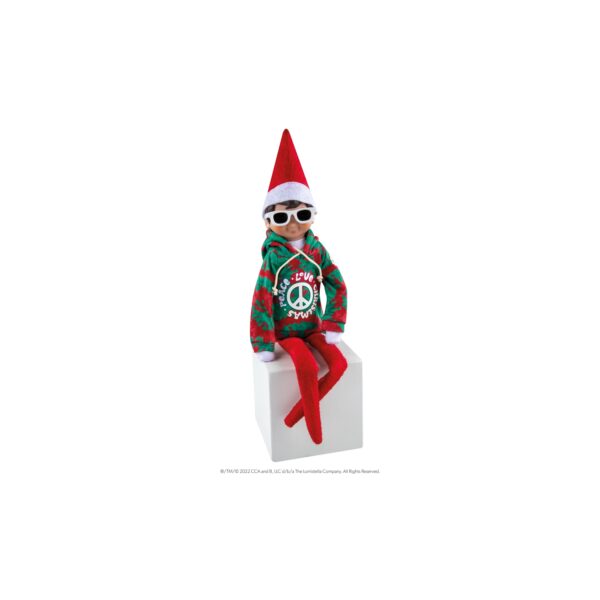 - Lass deinen Elf den „Love & Peace Hoodie“ tragen, während er die Kinder beobachtet und aufpasst, dass sie brav sind.