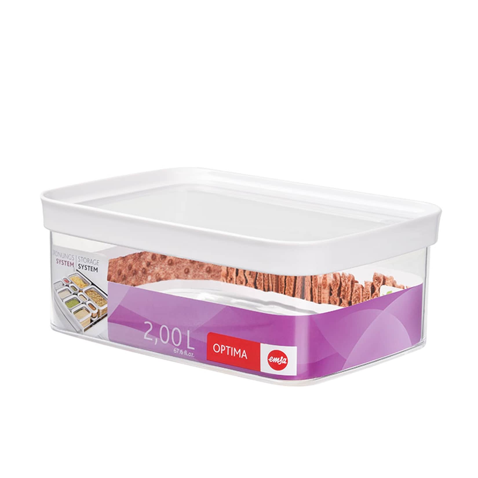 Diese Version der EMSA OPTIMA Dose hat ein Fassungsvermögen von 2 Litern und eine rechteckige Form.