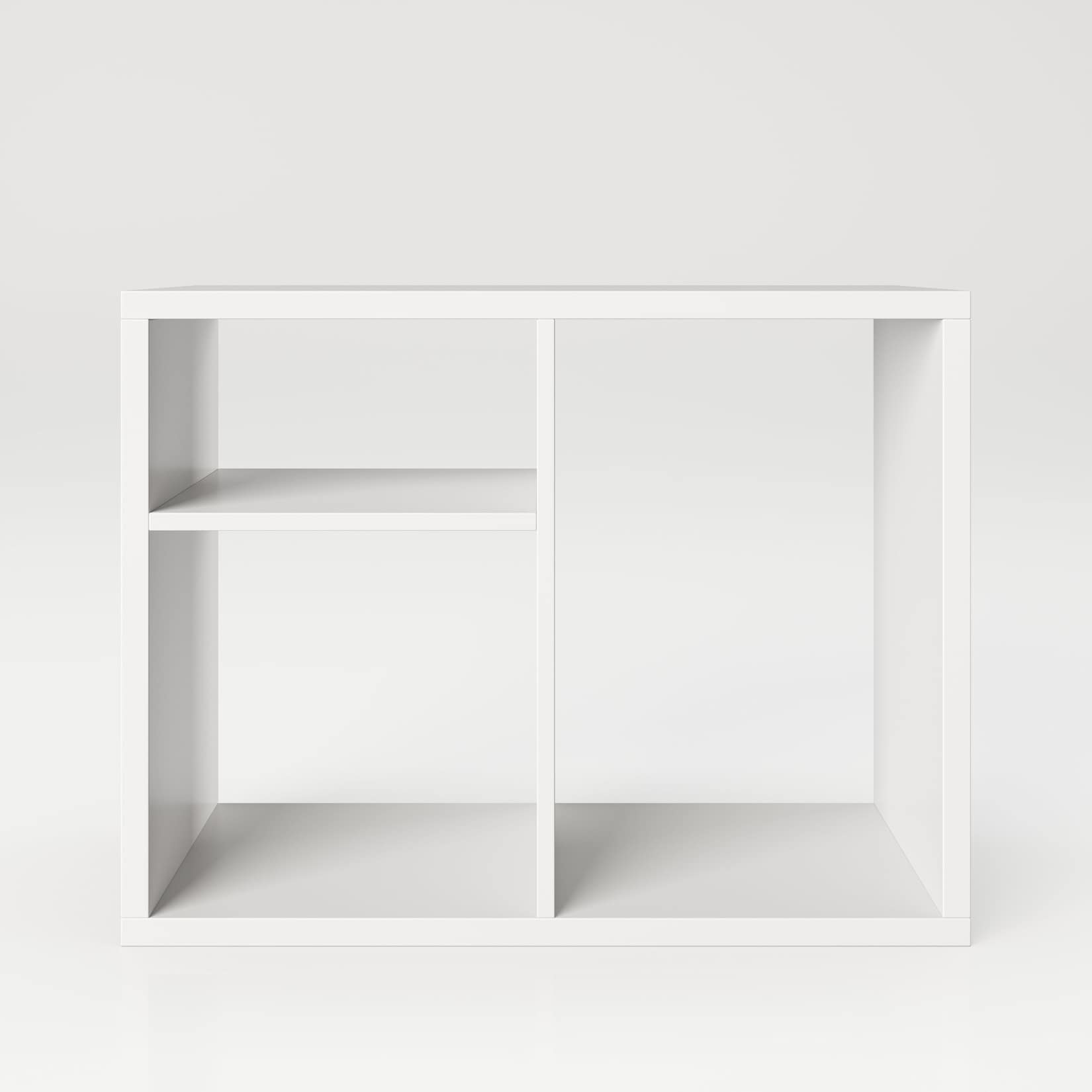 - Modernes Design: Die asymmetrische Aufteilung und das strahlende Weiß machen das Regal zu einem echten Hingucker.