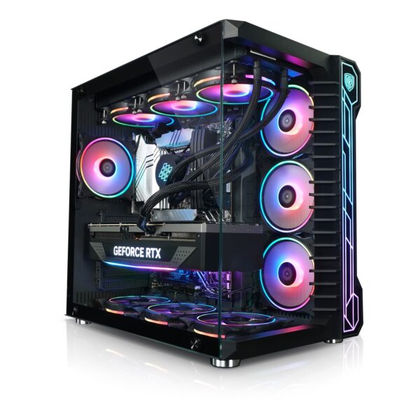 Der Gaming PC Panorama XL 14 ist nicht nur ein Kraftpaket, sondern auch ein echter Hingucker. Das elegante Gehäuse mit seinem Panoramablick auf die inneren Werte des PCs ist ein Statement für deinen Gaming-Lifestyle. Die RGB-Beleuchtung lässt sich individuell anpassen und verleiht deinem Setup eine persönliche Note. Egal, ob du ein dezentes Ambiente oder ein farbenfrohes Spektakel bevorzugst – der Panorama XL 14 passt sich deinen Wünschen an.