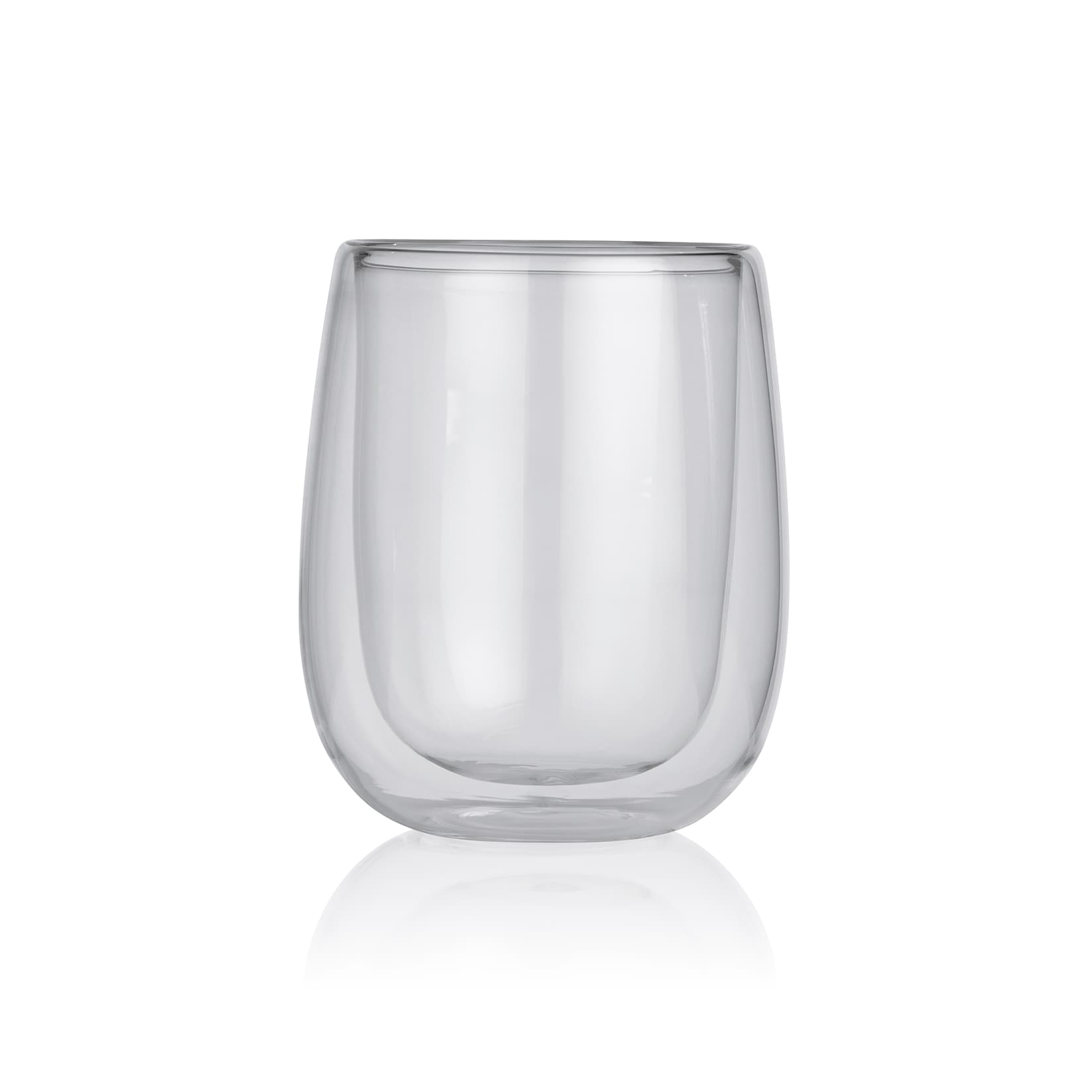 Die doppelwandige Bauweise hat aber noch einen weiteren Vorteil: Sie verhindert die Kondensation an der Außenseite des Glases. Das bedeutet, keine unschönen Wasserflecken auf Ihrem Tisch und immer einen sicheren Griff. Ein perfektes Zusammenspiel von Funktionalität und Ästhetik.