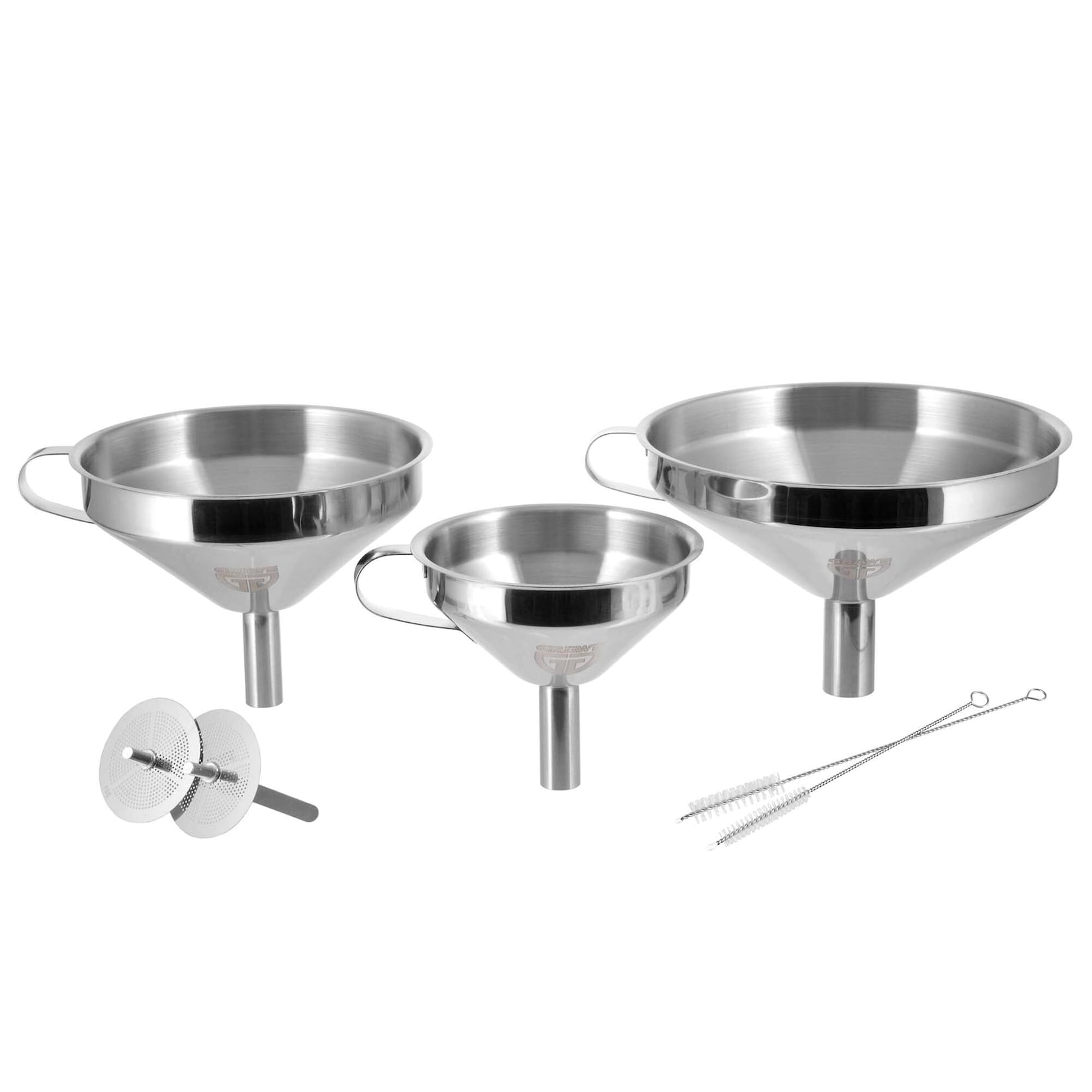 Das Set besteht aus hochwertigem, rostfreiem Edelstahl, was nicht nur für eine lange Lebensdauer garantiert, sondern auch eine einfache Reinigung ermöglicht. Die glatte Oberfläche verhindert, dass sich Rückstände festsetzen, und die Trichter können problemlos in der Spülmaschine gereinigt werden. So sparen Sie Zeit und Mühe bei der Reinigung und können sich ganz auf das Kochen und Genießen konzentrieren.