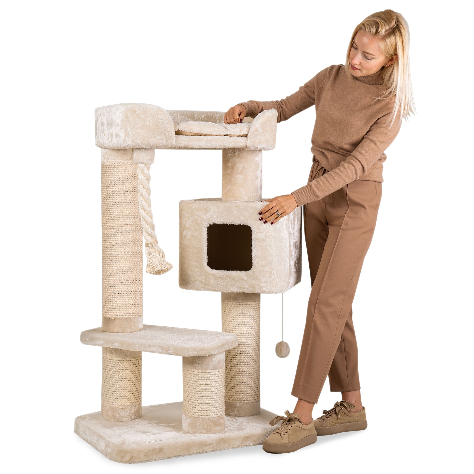 - Stilvolles Design: Der elegante Creme-Ton fügt sich nahtlos in jede Wohnungseinrichtung ein und macht den Kratzbaum zu einem echten Hingucker.