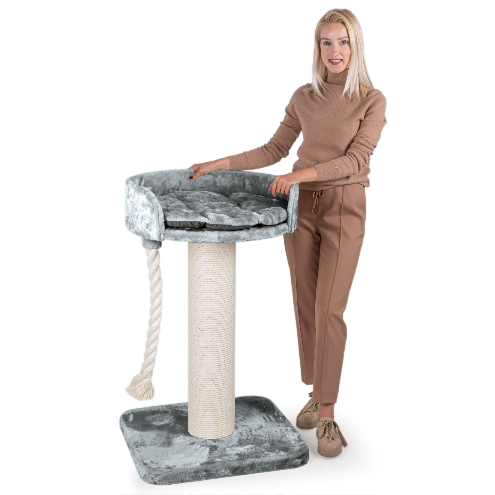 Der Kratzbaum ist in elegantem Grau gehalten.