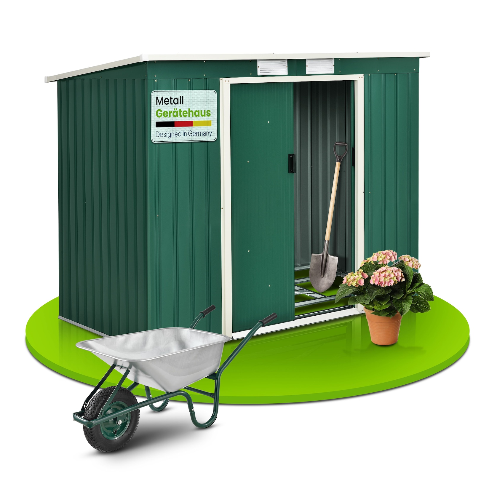 - Großzügiger Stauraum: 4 m³ Volumen für Gartengeräte, Werkzeuge, Fahrräder und mehr.