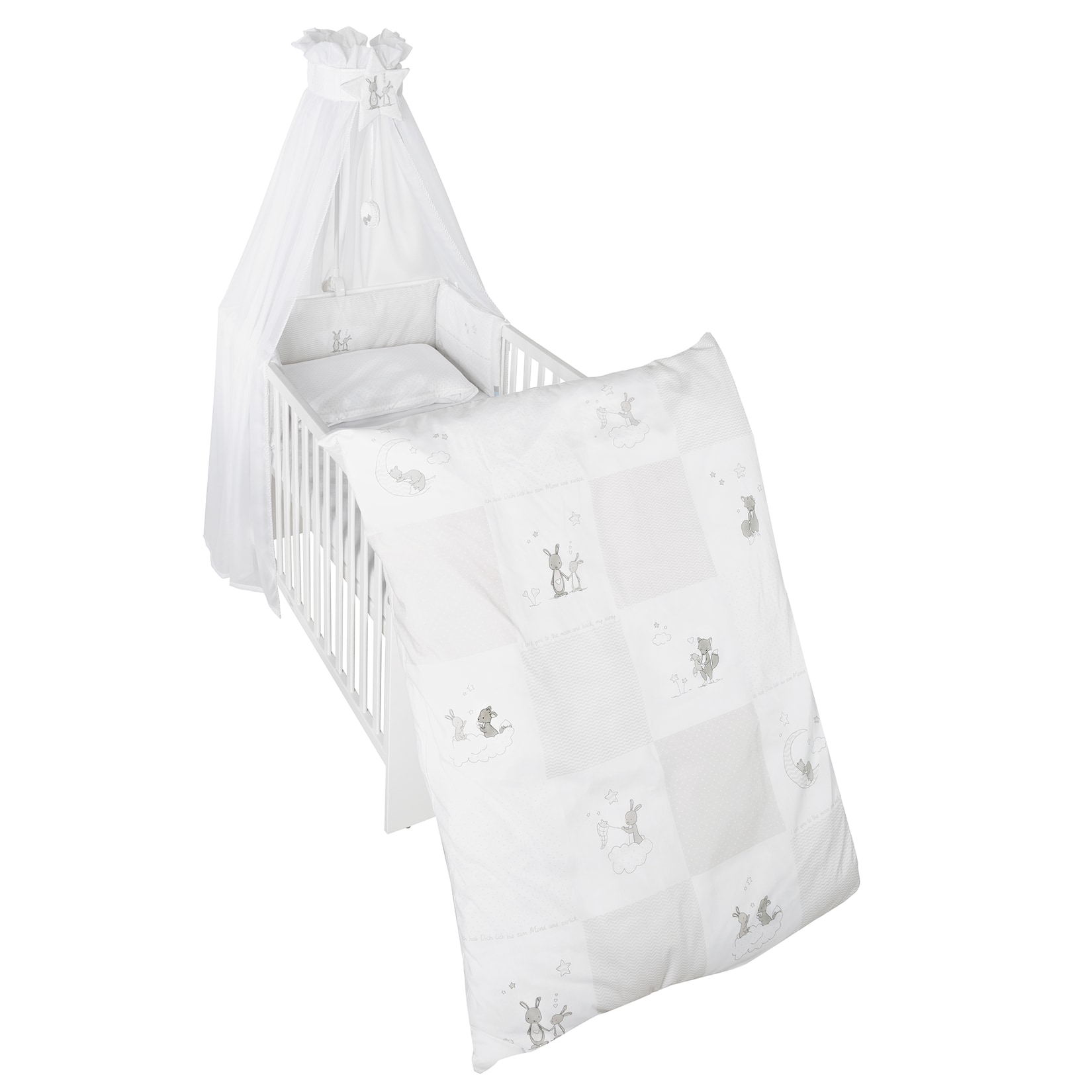 - 4-teiliges Set: Bettwäsche, Nestchen, Himmel