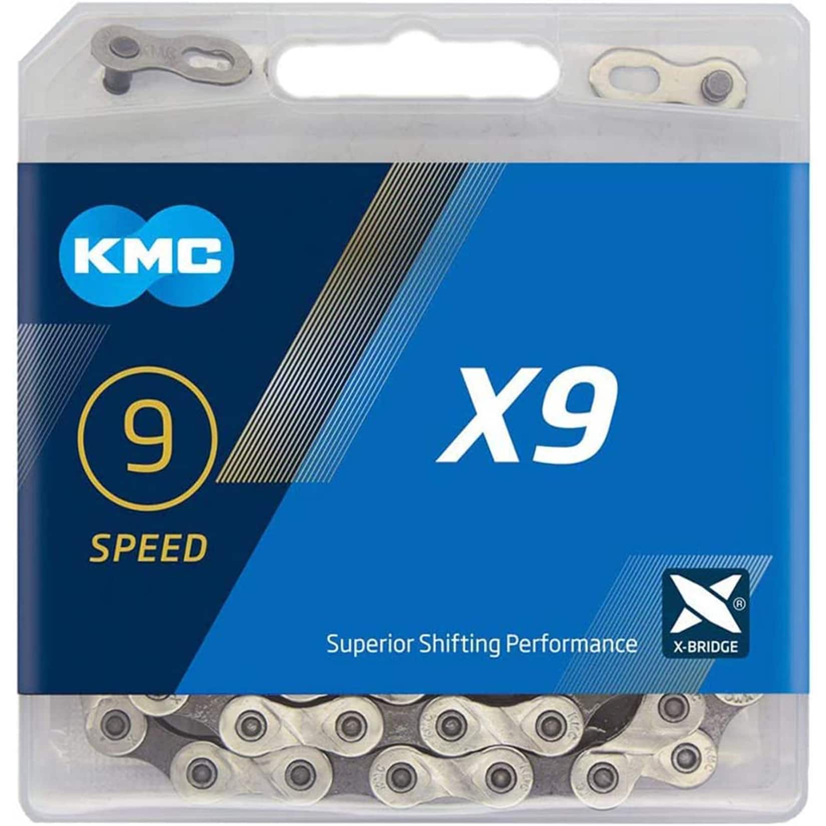 Die Zahl „X9“ steht für die Kompatibilität der Kette mit 9-fach Schaltsystemen. KMC verwendet diese Kennzeichnung, um die verschiedenen Kettentypen für unterschiedliche Schaltsysteme zu unterscheiden.