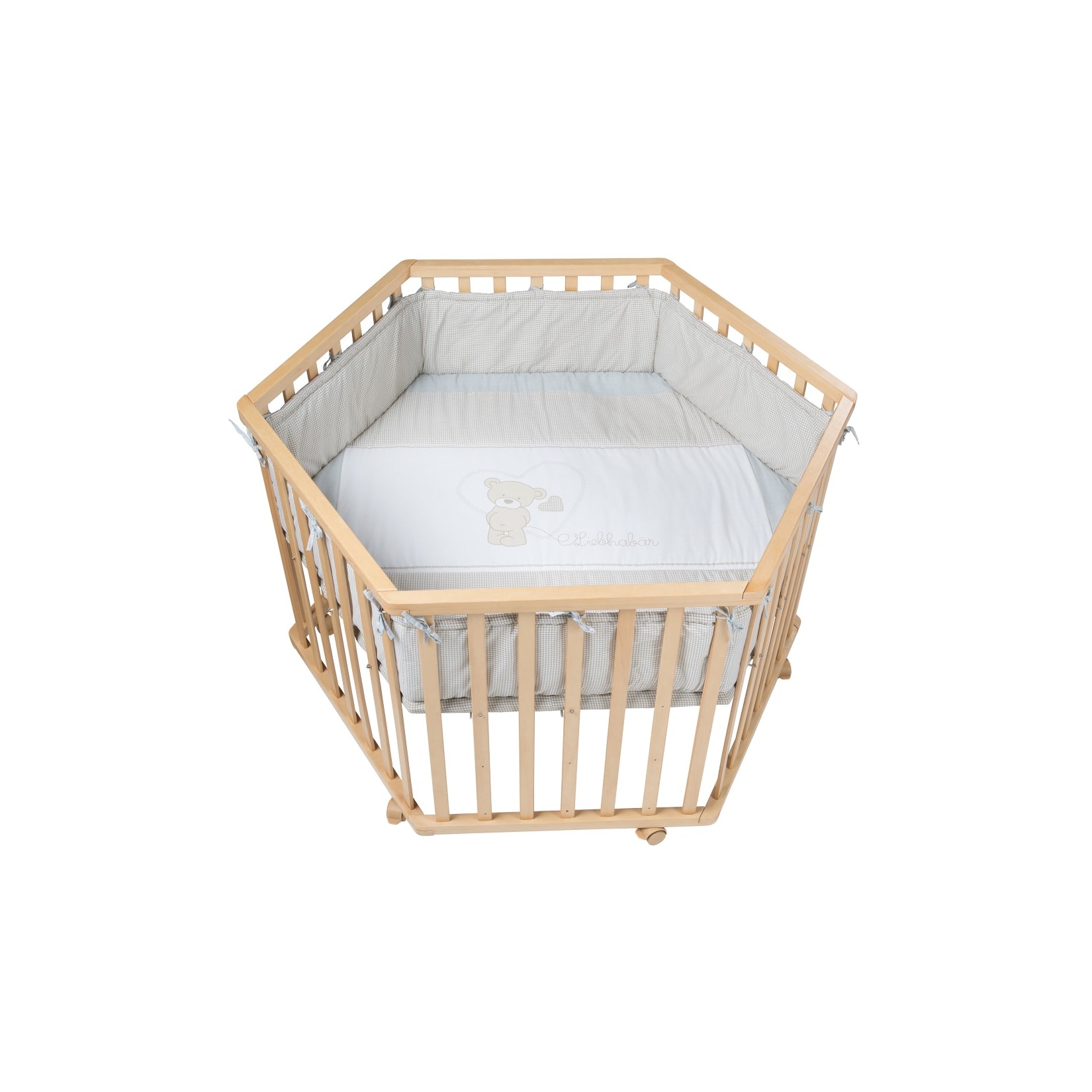 Schenke deinem kleinen Schatz einen sicheren und liebevollen Ort zum Entdecken und Spielen mit unserem 6-eckigen Laufgitter ‚Liebhabär‘ in natürlicher Optik. Dieses hochwertige Spielgitter bietet Geborgenheit und Bewegungsfreiheit zugleich, während du dich entspannt anderen Aufgaben widmen kannst. Mit der weichen Schutzeinlage und den praktischen Rollen ist das Laufgitter ‚Liebhabär‘ der ideale Begleiter für die ersten Lebensjahre deines Kindes.