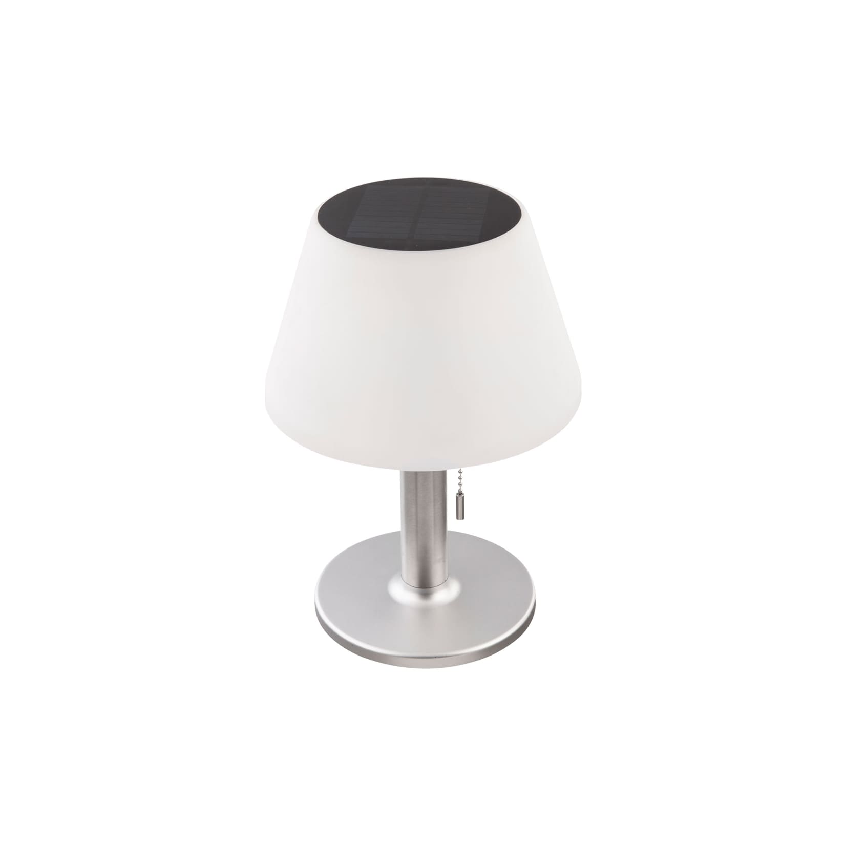 Verzaubern Sie Ihre Abende mit der LED Solartischlampe – Silberner Edelstahl, Weißes Licht, 28 cm Höhe