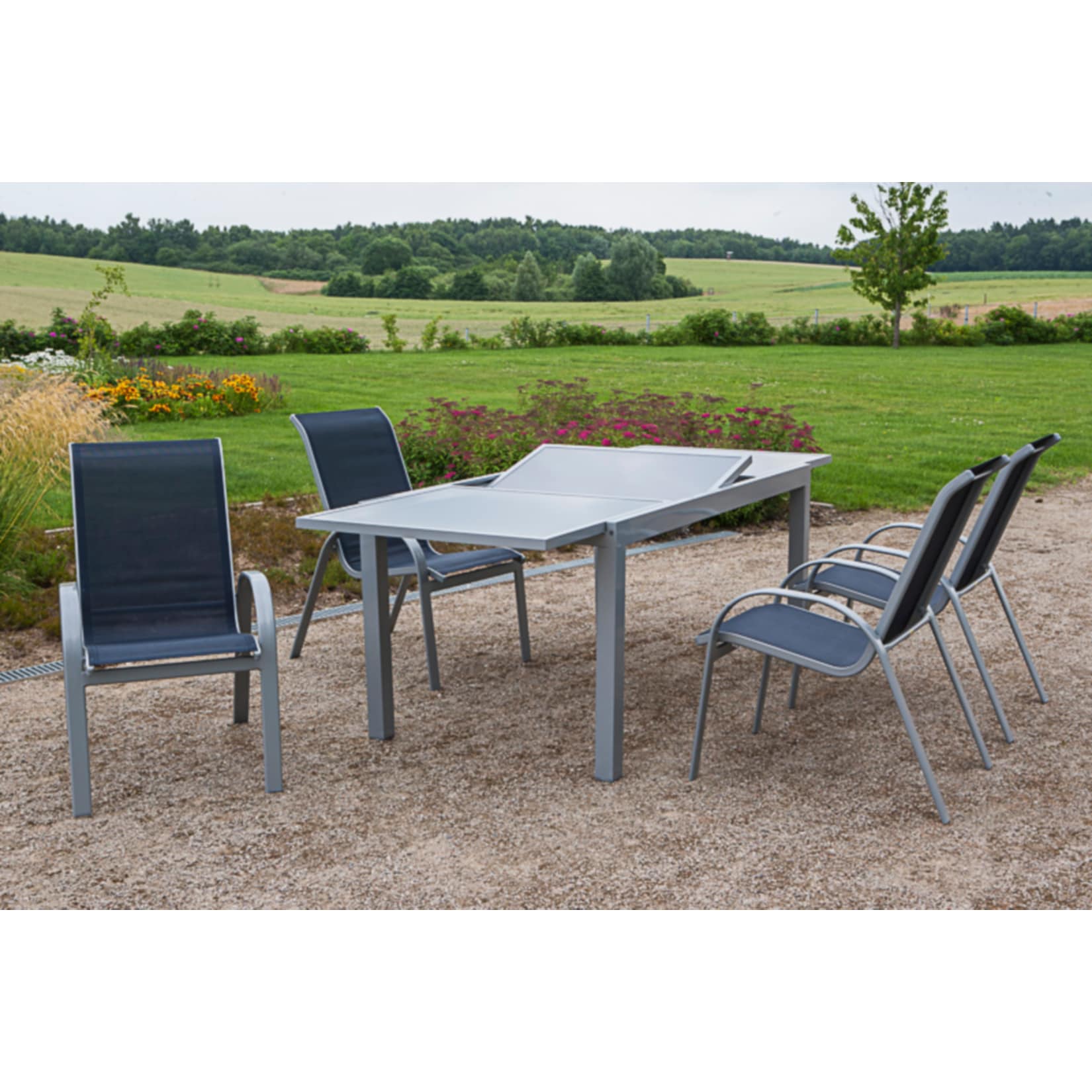 Stellen Sie sich vor: Ein lauer Sommerabend, das sanfte Rauschen der Blätter und das fröhliche Lachen Ihrer Liebsten. All das, vereint an einem stilvollen und einladenden Ort – Ihrer neuen Merxx Tischgruppe Amalfi. Dieses 5-teilige Gartenmöbelset in elegantem Marineblau ist mehr als nur eine Sitzgelegenheit; es ist ein Statement für Geschmack, Qualität und unvergessliche Momente im Freien.