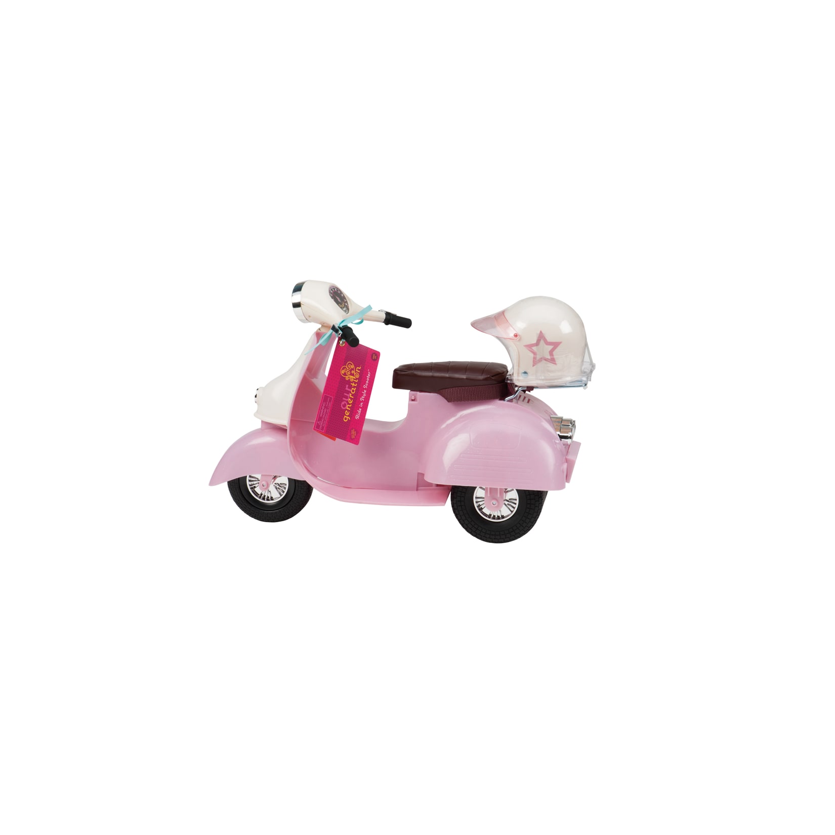 Das elegante Design in Pink und Elfenbein verleiht dem Roller einen Hauch von Vintage-Charme und macht ihn zu einem echten Blickfang. Die liebevollen Details, wie die robusten Räder und der bequeme Lenker, sorgen für ein realistisches und sicheres Spielerlebnis. Dieser Roller ist ein Must-Have für jede Our Generation Puppenbesitzerin, die Wert auf Stil und Abenteuer legt.