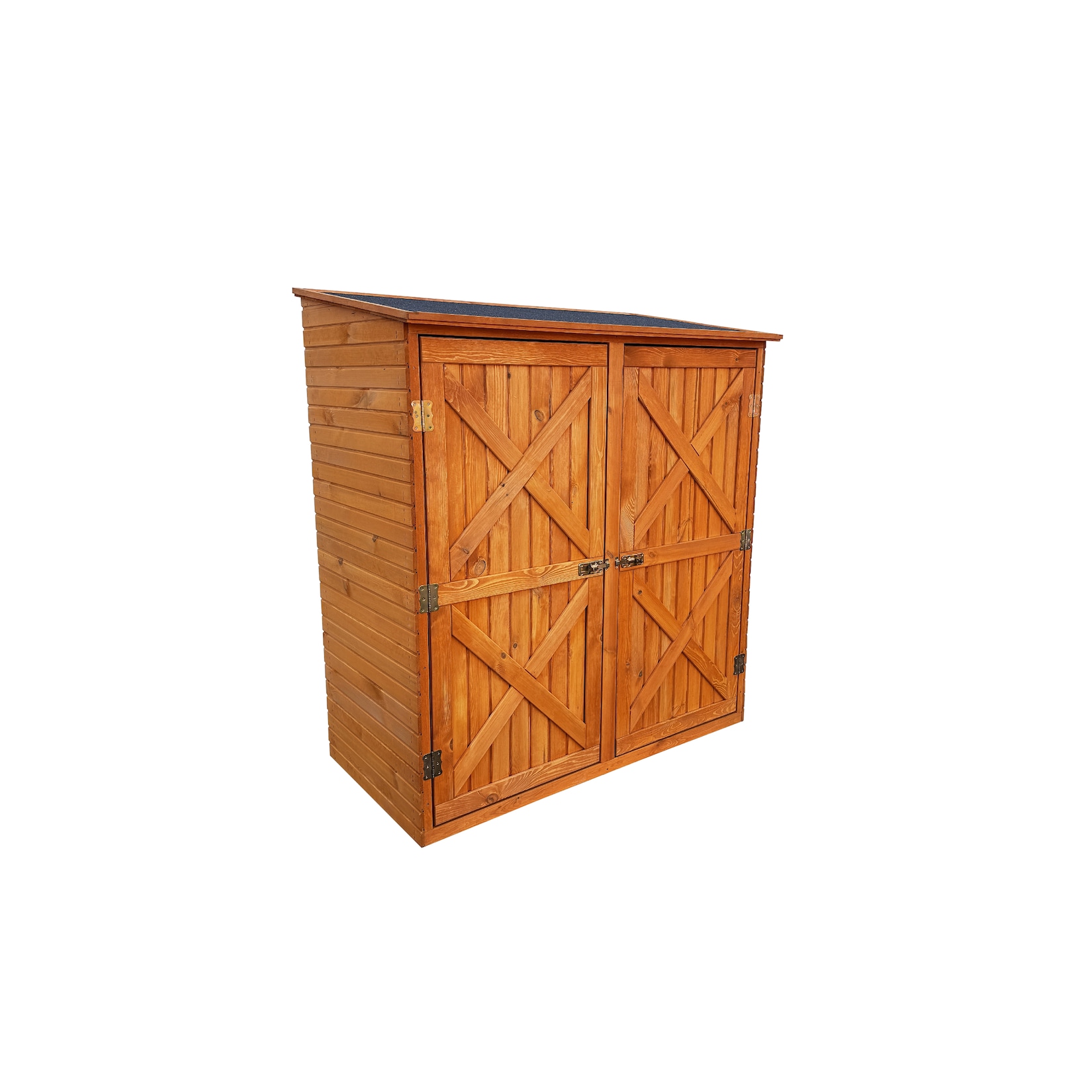 Der Geräteschrank ist aus hochwertigem, lasiertem Kiefernholz gefertigt. Das Holz stammt aus nachhaltiger Forstwirtschaft. Die Lasur schützt das Holz vor Witterungseinflüssen und verleiht dem Schrank ein ansprechendes Aussehen.