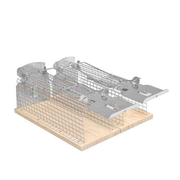 - Spannen: Spannen Sie die Falle, indem Sie die Tür vorsichtig öffnen und den Auslösemechanismus aktivieren. Achten Sie darauf, dass die Tür leichtgängig ist und sich schnell schließt.