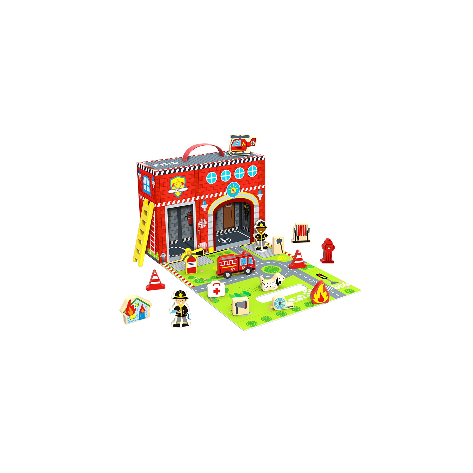 Entdecke die Welt der Helden mit der Tooky Toy Holzspielzeug Tragbaren Feuerwache TY203