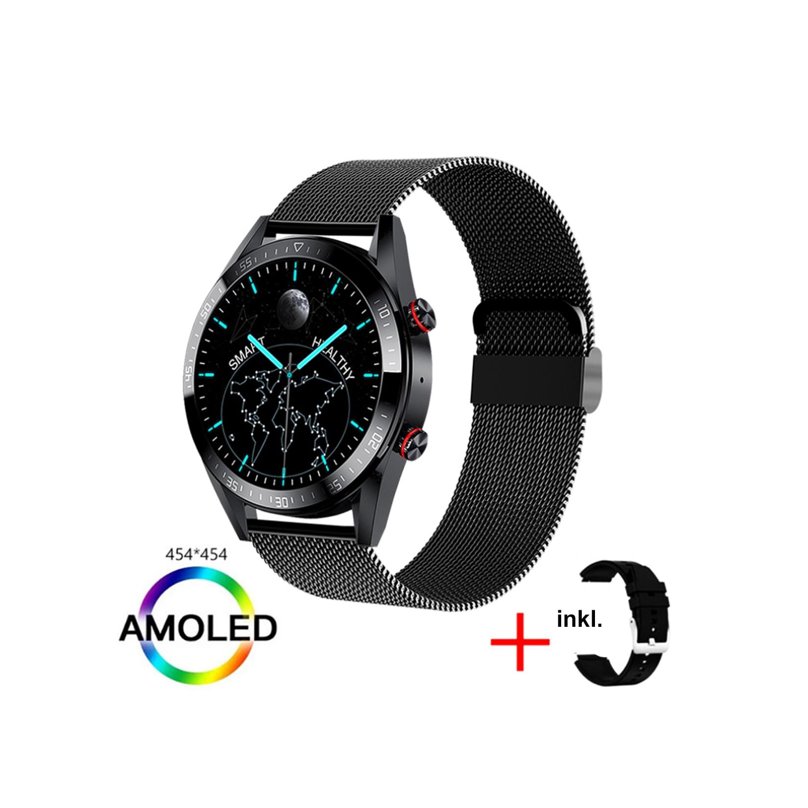 Im Lieferumfang der TPFNet Smart Watch sind gleich zwei Armbänder enthalten: Ein elegantes Milanaise-Armband aus hochwertigem Edelstahl, das deinem Look einen Hauch von Luxus verleiht, und ein bequemes Silikonarmband, das sich ideal für sportliche Aktivitäten eignet. Beide Armbänder lassen sich dank des Schnellwechselsystems mühelos austauschen, sodass du deine Smartwatch jederzeit deinem Outfit und deinen Plänen anpassen kannst.