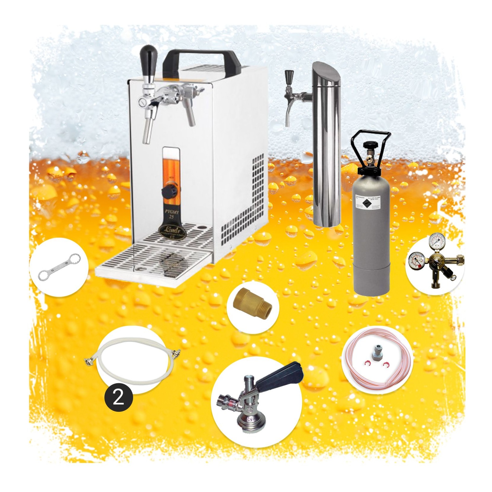 Das Set beinhaltet den PYGMY 25 LE Durchlaufkühler, eine Schanksäule, einen Kombi-Zapfkopf sowie alle notwendigen Schläuche und Anschlüsse für die Inbetriebnahme.