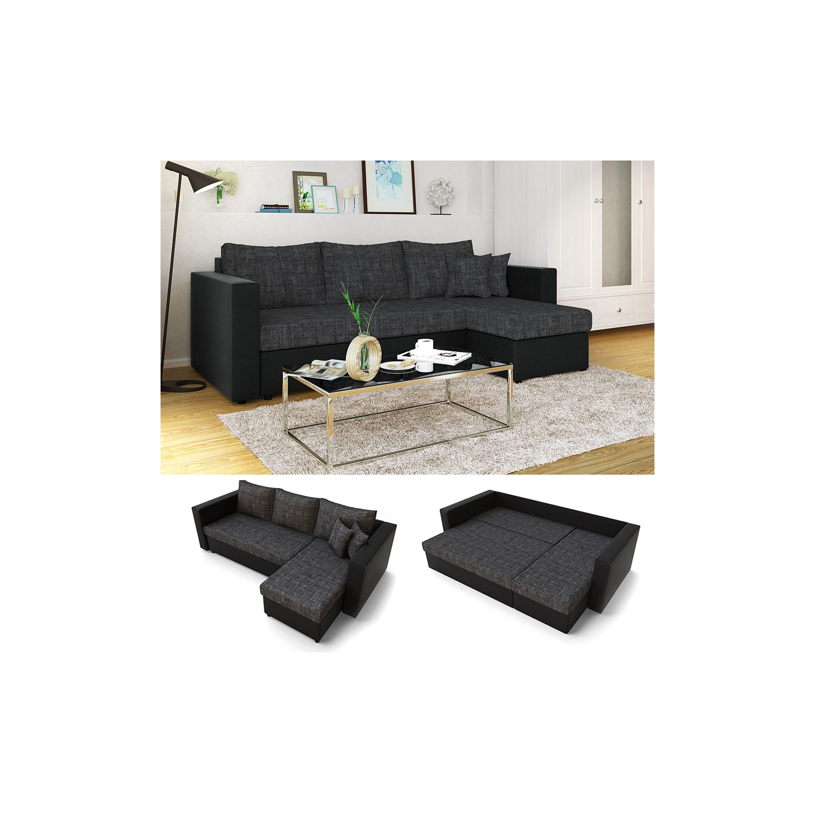 Vicco Ecksofa mit Schlaffunktion: Grau-schwarzes Design für stilvolles Wohnen und erholsamen Schlaf