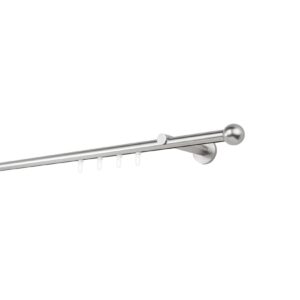 Ondeco Gardinenstange auf Maß Innenlauf 20mm Ball 1-lauf Wandträger 12cm mit Gleiter Farbe: Edelstahl-Optik, Größe: 190cm