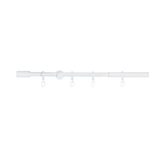 Ondeco Gardinenstange ausziehbar 1-lauf Wandmontage Endstück Rille 16/19 mm mit Ringen Farbe: Weiß, Größe: 120-210 cm