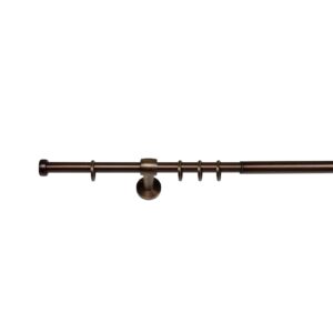 Ondeco Gardinenstange ausziehbar 1-lauf Wand-Deckenmontage Endstück Kappe 16/19 mm mit Ringen Farbe: Bronziert, Größe: 120-210 cm