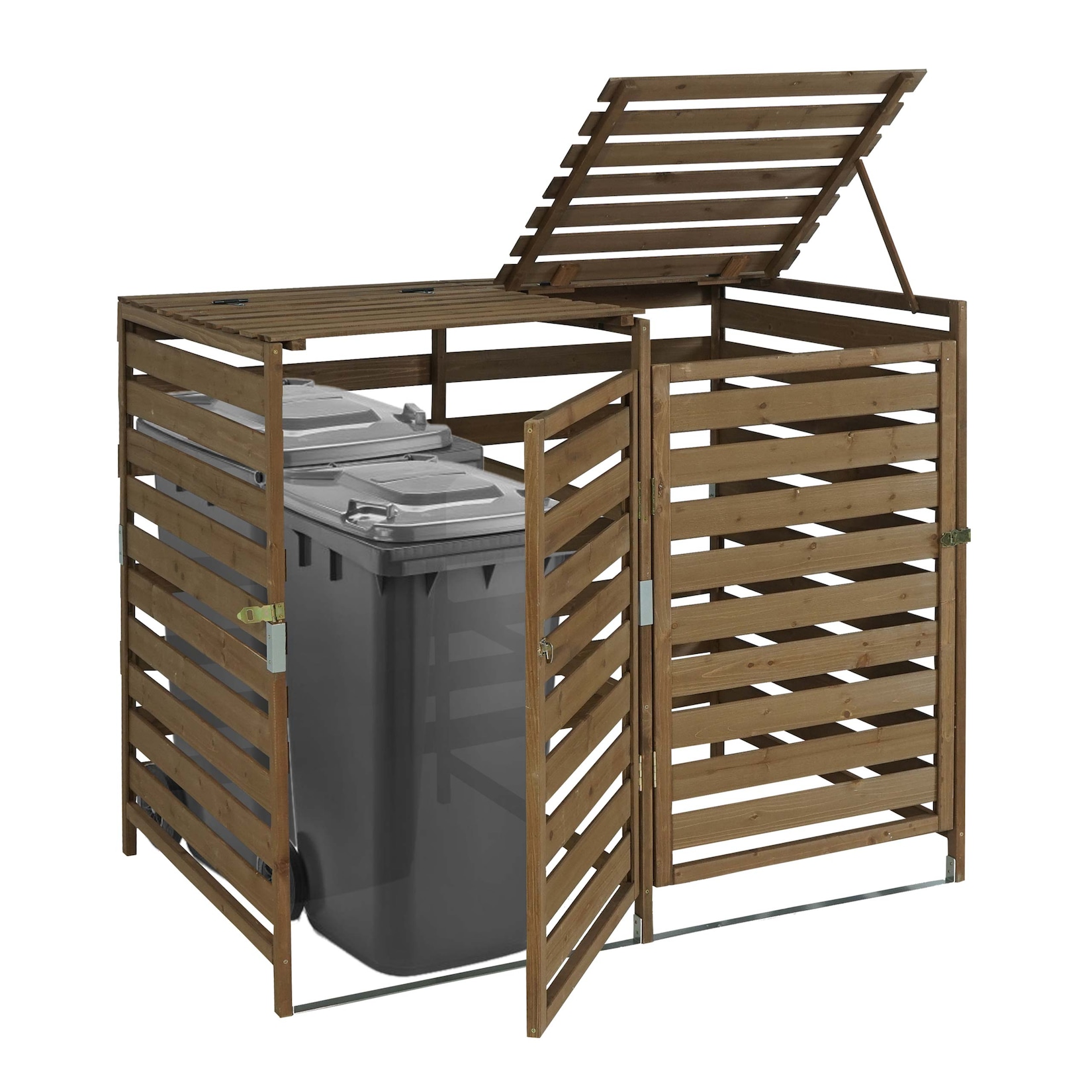 Diese hochwertige Mülltonnenbox aus massivem Holz bietet nicht nur eine praktische Lösung zur Verdeckung Ihrer Mülltonnen, sondern fügt sich dank ihres zeitlosen Designs harmonisch in jede Umgebung ein. Stellen Sie sich vor, wie Ihre Nachbarn Sie um dieses ästhetische Upgrade beneiden werden!